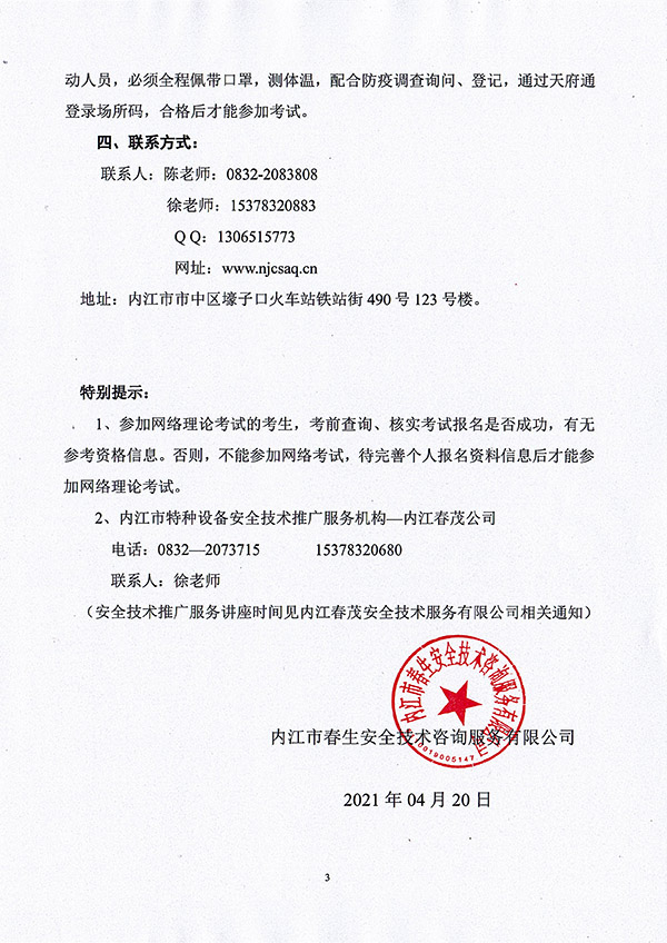 2021年春生公司04期特種設(shè)備作業(yè)人員考核時(shí)間安排
