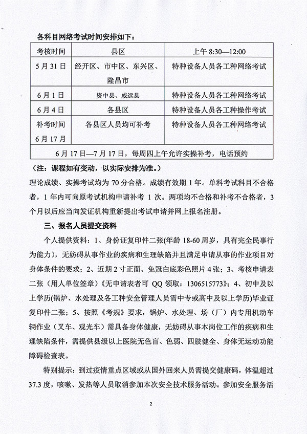 2021年春生公司03期特種設(shè)備作業(yè)人員考核時(shí)間安排