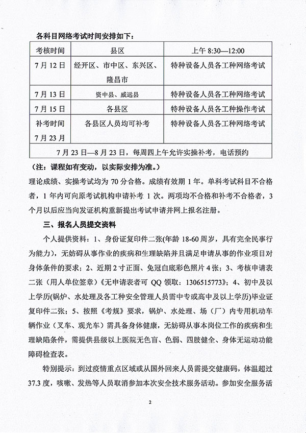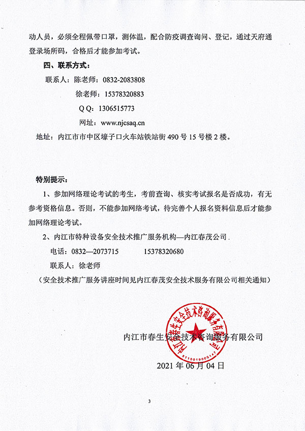 2021年春生公司05期特種設備作業(yè)人員考核時間安排