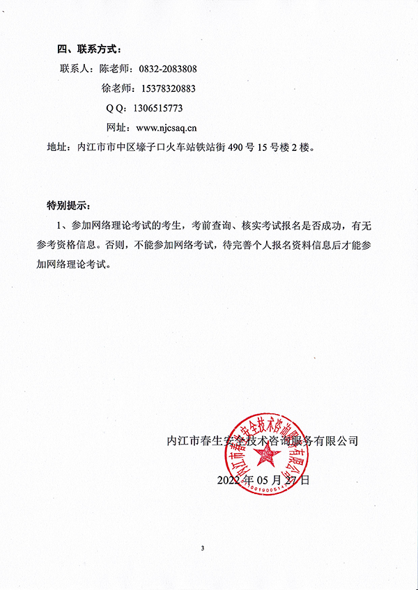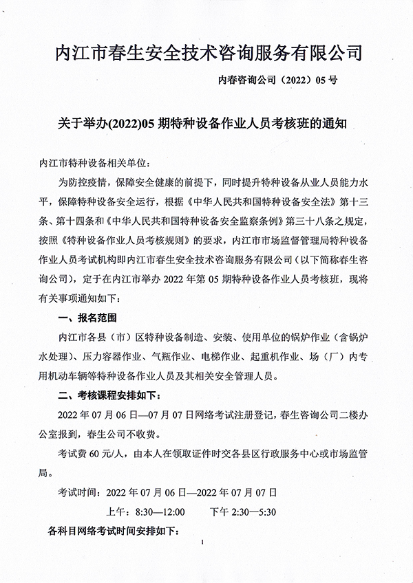 2022年春生公司05期特種設(shè)備作業(yè)人員考核時間安排