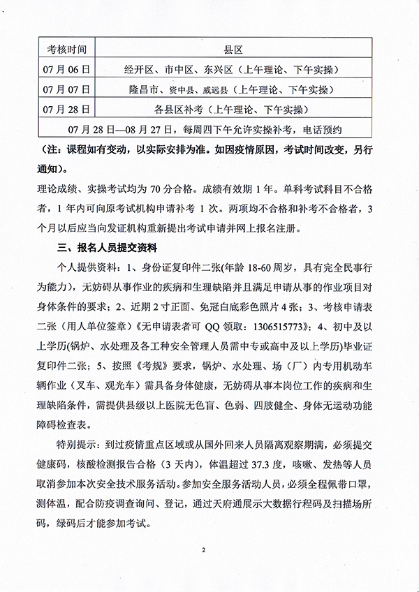 2022年春生公司02期特種設(shè)備作業(yè)人員考核時間安排