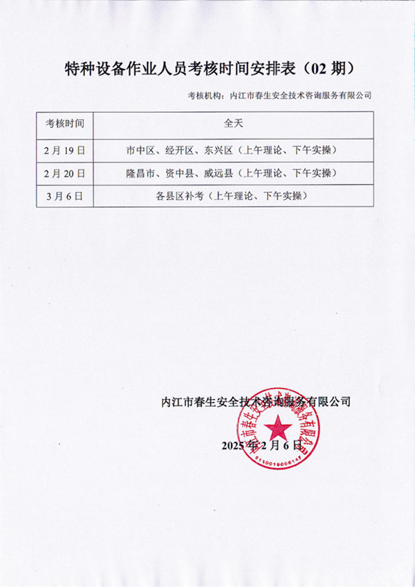 2025年春生公司第2期特種設(shè)備作業(yè)人員考核通知