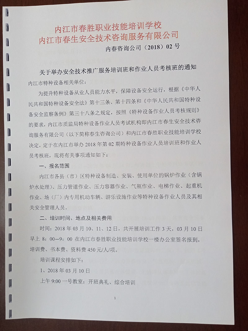 關(guān)于舉辦安全技術(shù)推廣服務(wù)培訓(xùn)班和作業(yè)人員考核班的通知
