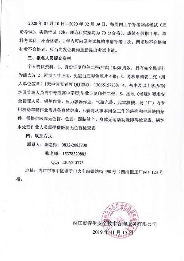 2020年第二期特種設(shè)備作業(yè)人員考核培訓(xùn)班的通知