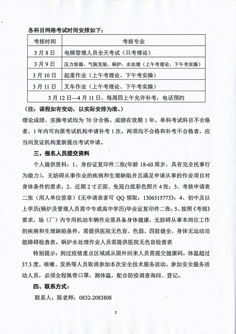 2021年春生公司02期特種設備作業(yè)人員考核班通知